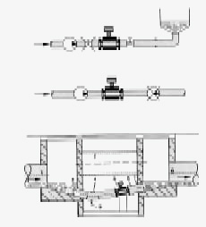 | 电磁流量计安装时测量电极的轴线必须近似于水平方向,测量管道内应完全充满液体。流量计的前方最少要有5D(D为流量计内径)长度的直管段,后方最少要有3D长度的直管段,流体的流动方向和流量计的箭头方向一致。管道内如有真空会损坏流量计的内衬,需特别注意。流量计附近应无强电磁场,并有充裕的空间,以便安装和维护。若测量管道有振动,在流量计的两边应有固定的支座。测量不同介质的混合液体时混合点与流量计之间的距离最少要有30D(D为流量计内径)长度。为方便今后流量计的清洗和维护,应安装旁通管道。安装聚四氟乙烯内衬的流量计时,连接两个法兰的螺栓应注意均匀拧紧,否则容易压坏聚四氟乙烯内衬,最好用力矩扳手。 |